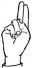 На ћирилици написано ЕВГЕНИЈЕ ПОЉАКОВИЋ састоји се из 17 слова [?]. Исписано ћириличном једноручном азбуком за глувонеме:
